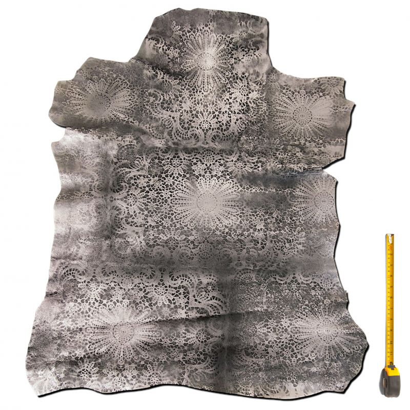 Peau entière de Chèvre gris argenté imprimé Dentelle